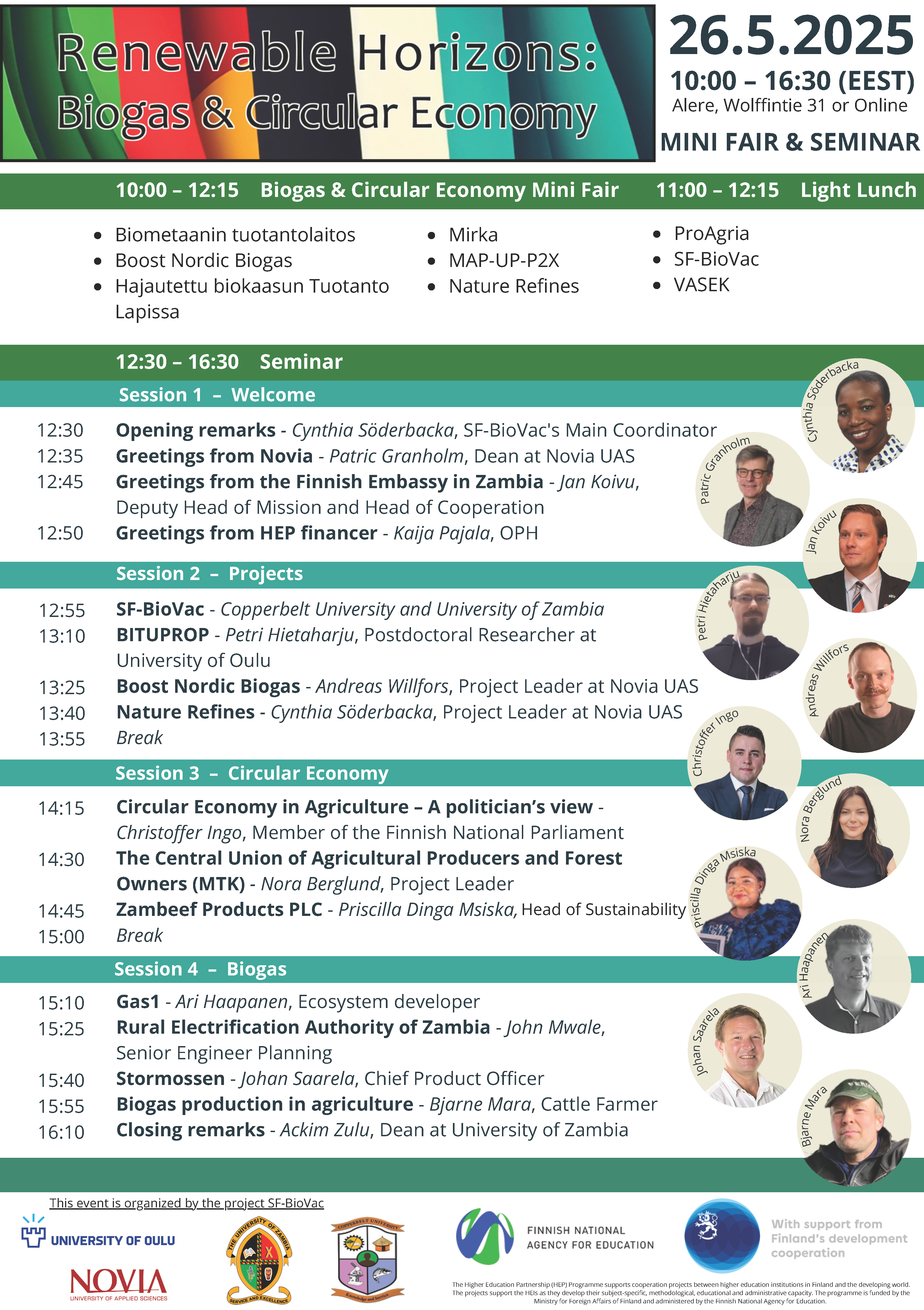 We are thrilled to invite you to join us for an engaging and informative mini fair and seminar focusing on the exciting topics of biogas and circular economy! This event promises a fantastic opportunity to learn, network, and grow new insights. Check out the program below, and remember to register to the event!